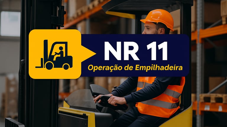 Aborda práticas seguras na operação de equipamentos de transporte e movimentação de materiais, como empilhadeiras e gruas.